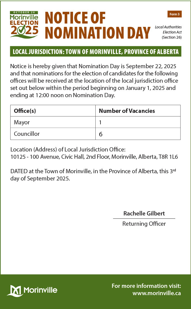 DATED at the Town of Morinville, in the Province of Alberta, this 3rd day of September 2025.