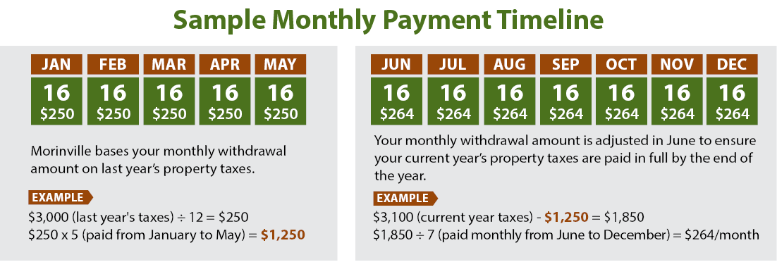 The property tax amount for each property owner in Morinville is unique to their specific property. Joining this plan can take up to 2 weeks to process, provided that all the required supporting documentation is submitted along with your application. Please apply no later than the 1st day of the month in which you wish to begin payments.