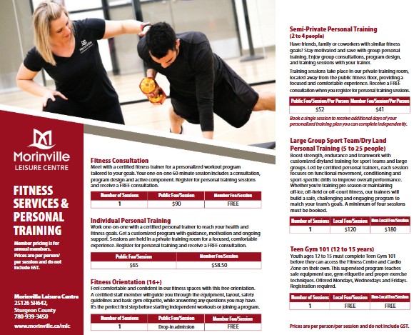 Personal Training Services are offered at the Morinville Leisure Centre.